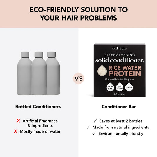 Kitsch Rice Water Shampoo & Conditioner Set - Solid Rice Water Shampoo & Conditioner Bar Soap for Hair Care, Strengthening & Nourishing Soap Bar, Paraben-Free & Sulfate-Free, Made in USA - 2pcs