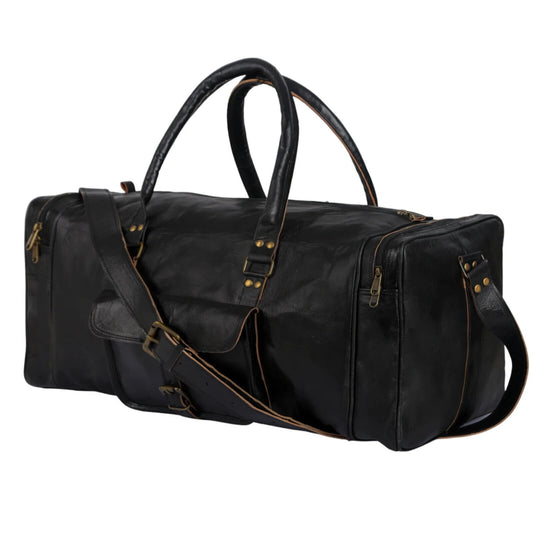 Black Solid Leather Men's Travel Bag Genuine Duffel Luggage Gym Weekend