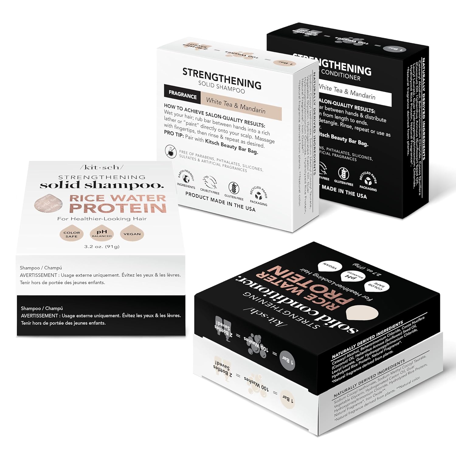 - GOOD FOR YOUR HAIR: This hair care set is perfect for dry, weak, brittle and color-treated hair that is in need of extra nourishment. Our Kitsch Rice Water Shampoo Bar is specially formulated to gently cleanse, moisturize and nourish your hair, while being Paraben-Free and Sulfate-Free to prevent excessive splitting or breakage. Our Hair Conditioner Bar is made with natural ingredients and is estimated to last 100 washes, making it the best hair conditioner for dry hair.